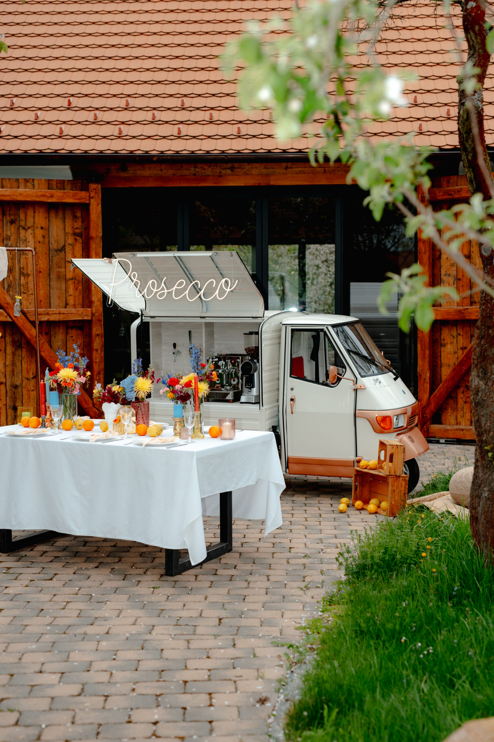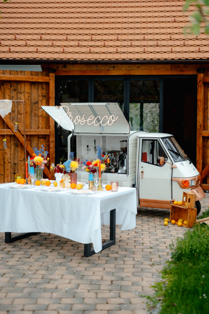 Naše italské Piaggio Ape přiveze kousek Itálie přímo na vaše svatby, firemní akce a konference! Nabízíme výběrové italské prosecco, míchané drinky jako Aperol, Limoncello nebo Hugo a kvalitní kávu připravenou přesně podle vašich představ – od espressa po cold brew. Nechte se hýčkat skvělými nápoji v jedinečném stylu!